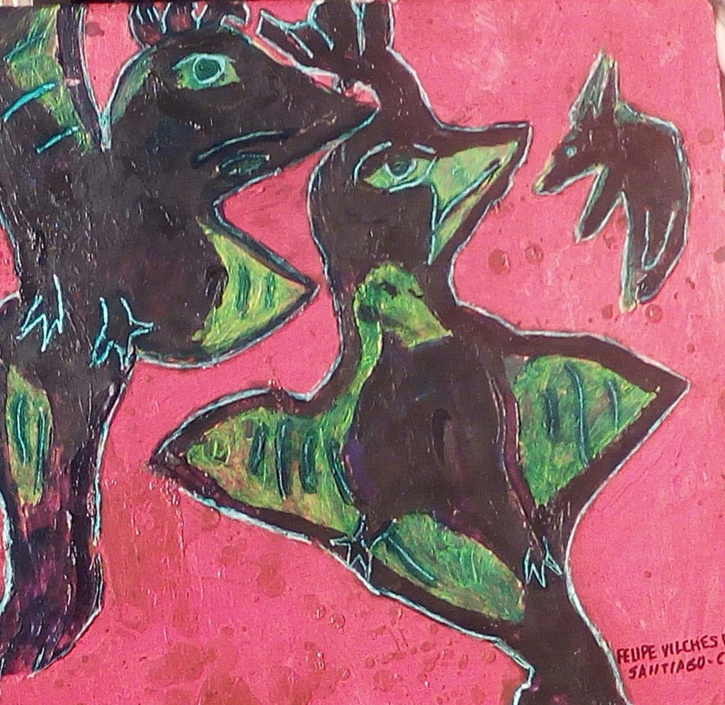 Felipe Vilches Rubio. Filósofo y artista chileno nacido en 1951. Inicia su vocación al Arte en medio de cientos de libros en las bodegas de Traperos Emaus.